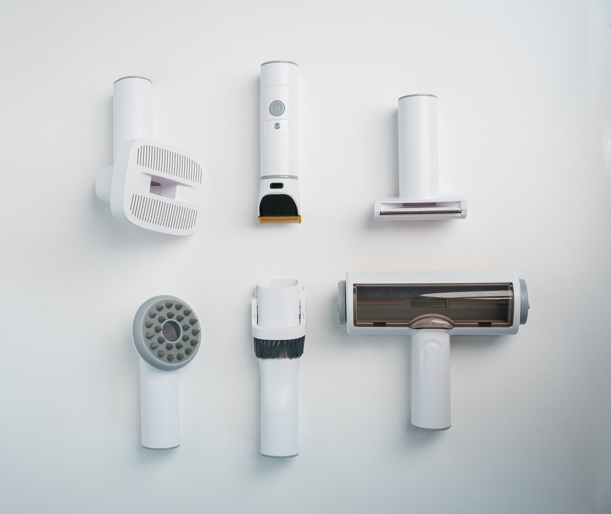 - 6 udskiftelige plejeværktøjer: trimmer, pelsbørste, underuldsfjerner, rullebørste, massagebørste og 2-i-1 fugemundstykke
